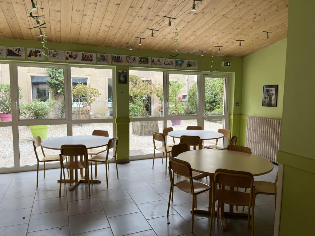Installés sur des tables de 4 ou de 6 personnes, les apprenants se voient servir les menus élaborés par notre cuisinier mais également les plats confectionnés en cours d’alimentation par nos élèves.