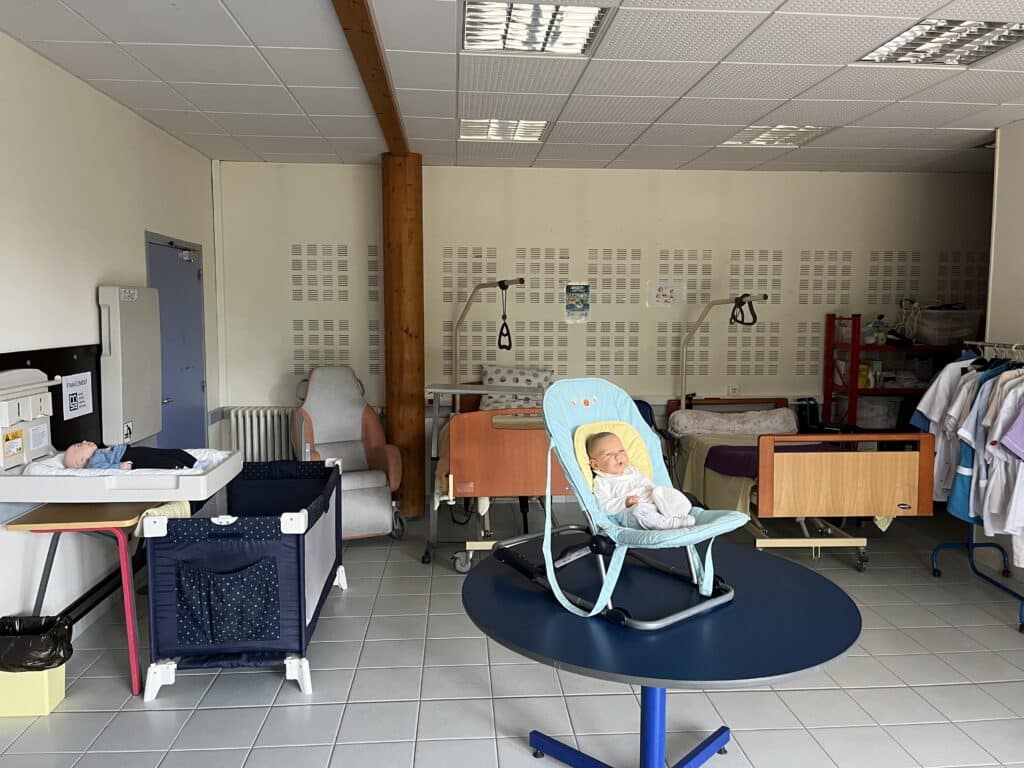 ◦ une salle santé équipé de deux lits médicalisés, d’un espace de puériculture et de différents appareils pour le service auprès des personnes.